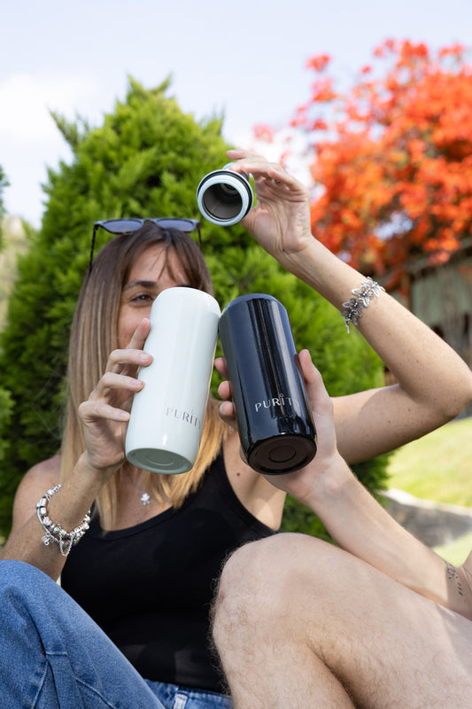 Esta práctica botella 2 en 1 está hecha de acero inoxidable y...
