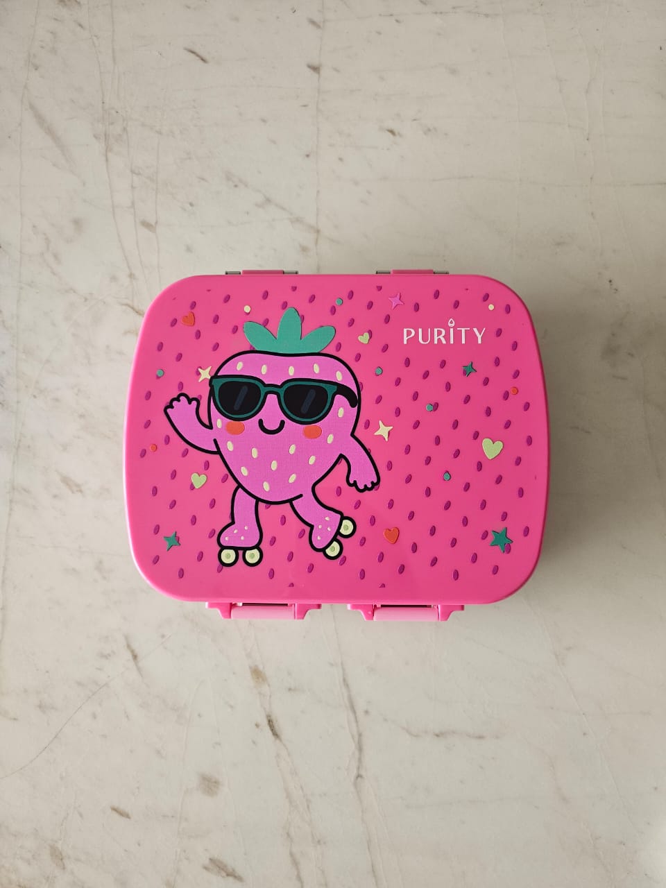 Fabricadas en acero inoxidable y con un lindo diseño de fresita. Nuestras loncheras son la opción perfecta para mantener la comida de tus peques fresca y deliciosa. Además es apta para microondas! (por 2 minutos y con la tapa semi abierta o abierta). Al evitar el uso de plástico, no solo optas por una alternativa más saludable para sus comidas, sino que también contribuyes a cuidar nuestro planeta.