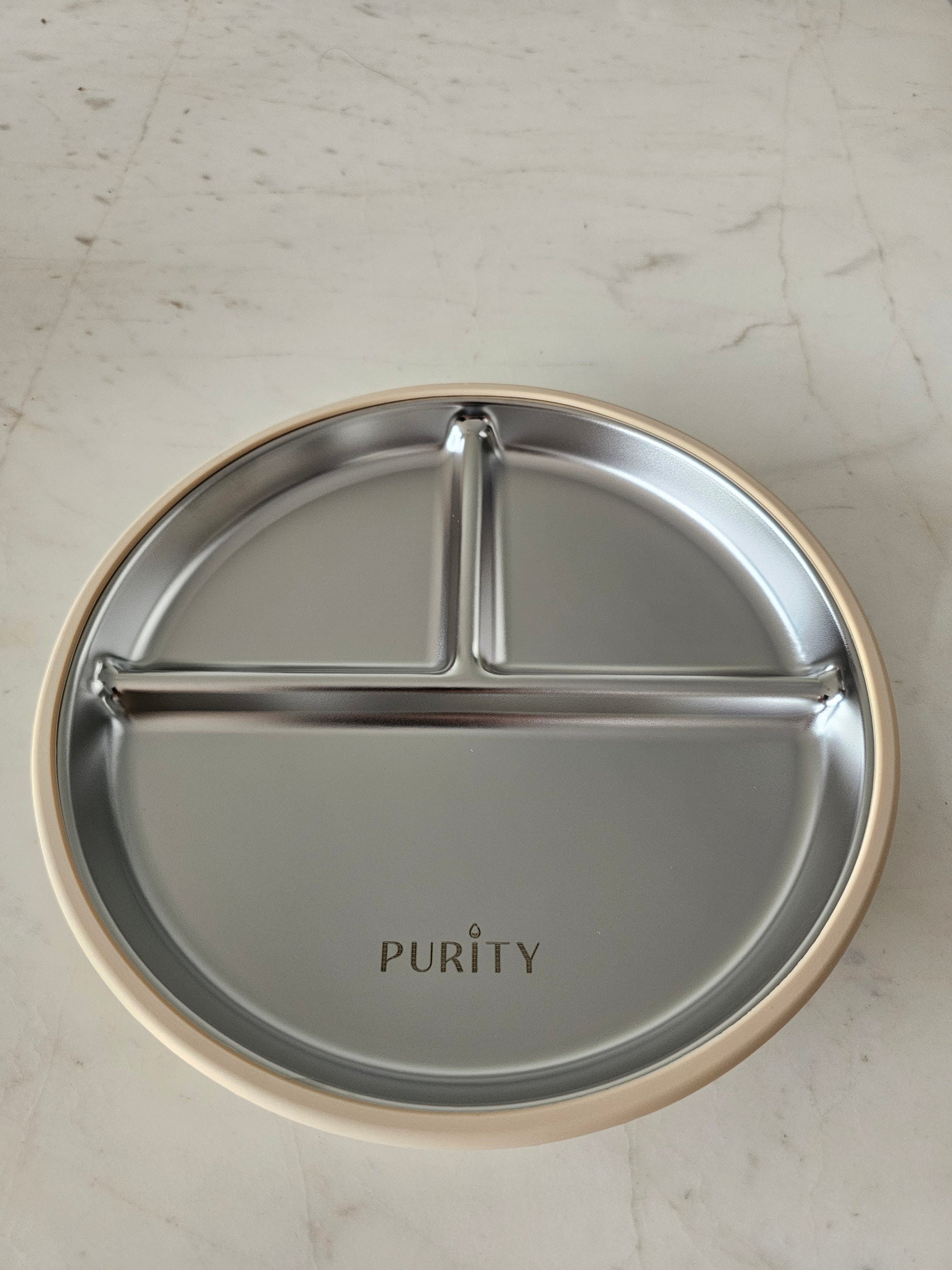 Plato de acero inoxidable y silicona Beige
