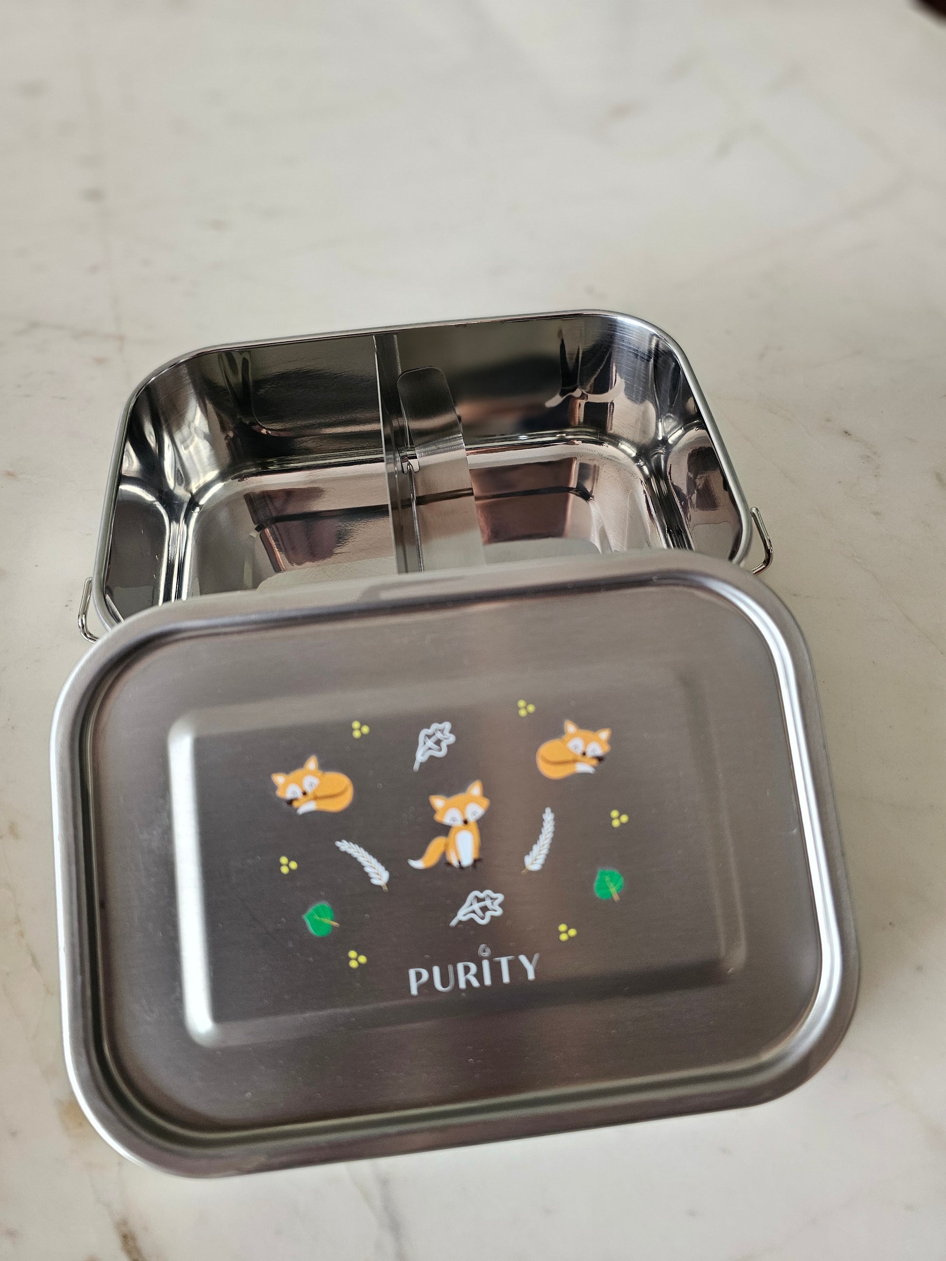 En acero inoxidable y con un lindo diseño de zorritos, nuestro taper tiene cierre hermético y viene con un divisor en acero inoxidable extraíble. Al elegir no utilizar plástico, no solo garantizas comidas más saludables y frescas, sino que también haces una contribución positiva al medio ambiente.